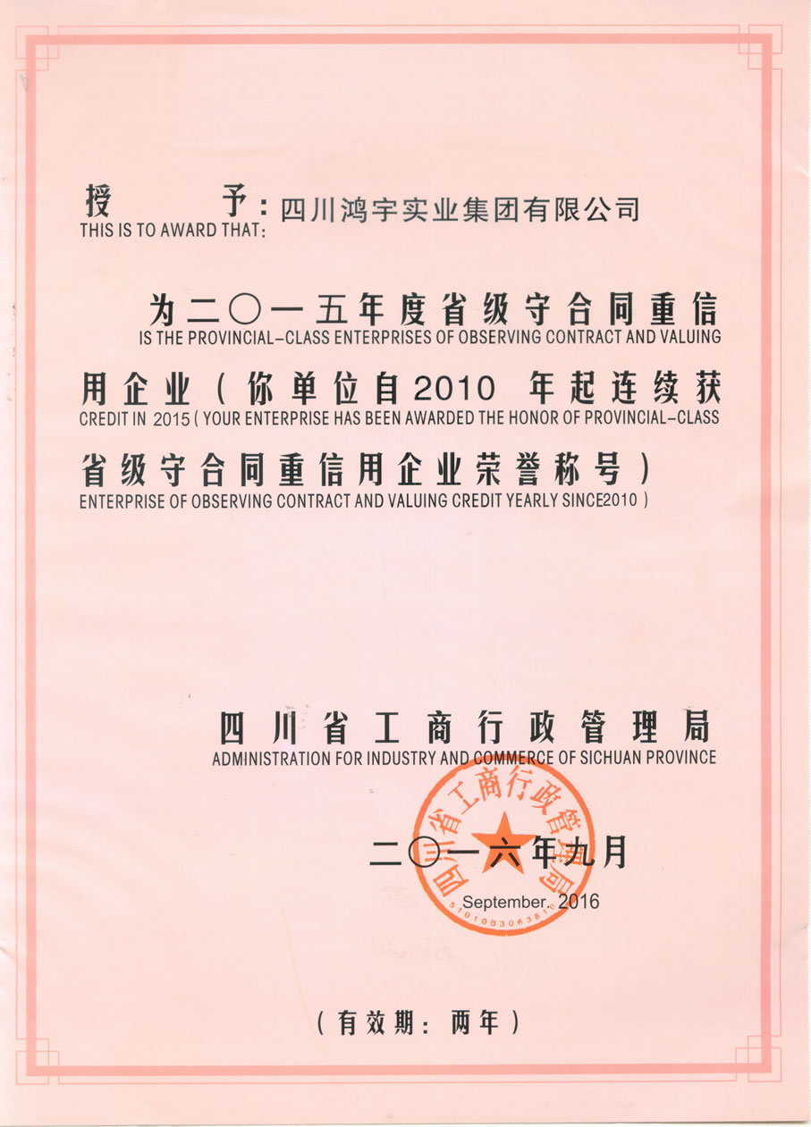 二O一五年度省級(jí)守合同重信用企業(yè)